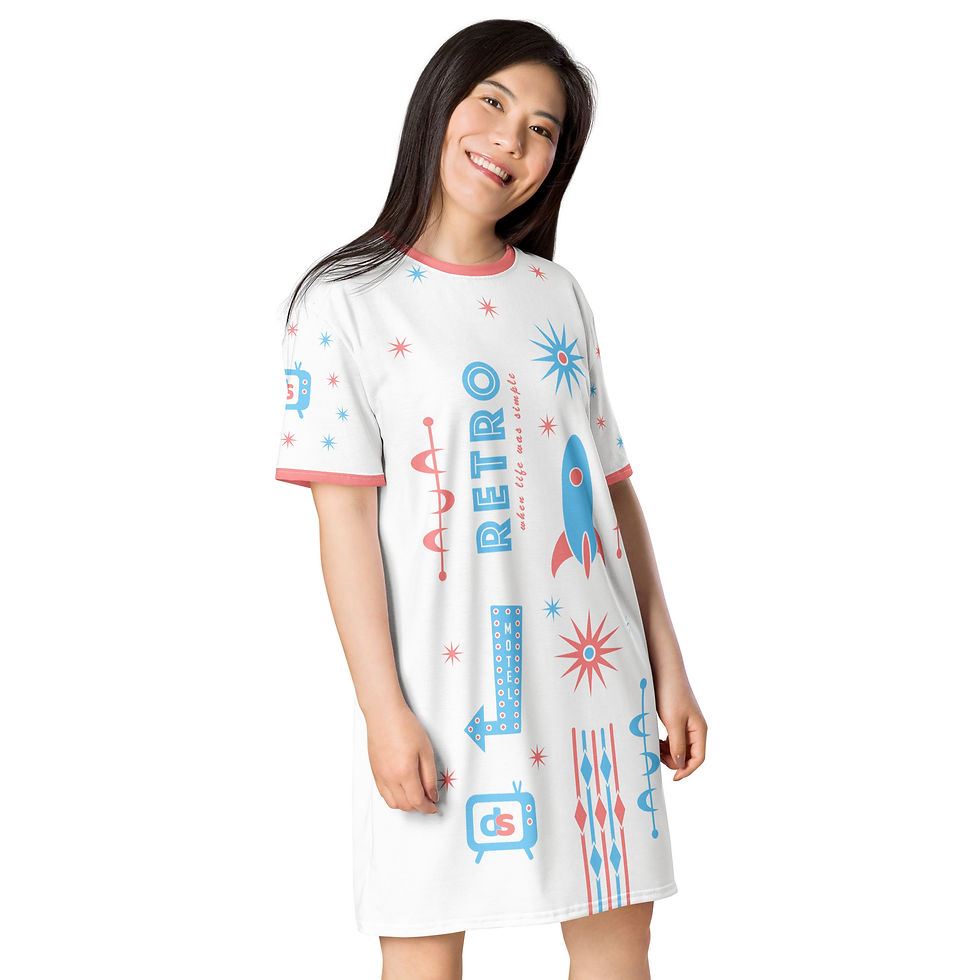 DS T-Shirt Dress - 'Retro' (Pink/Blue)