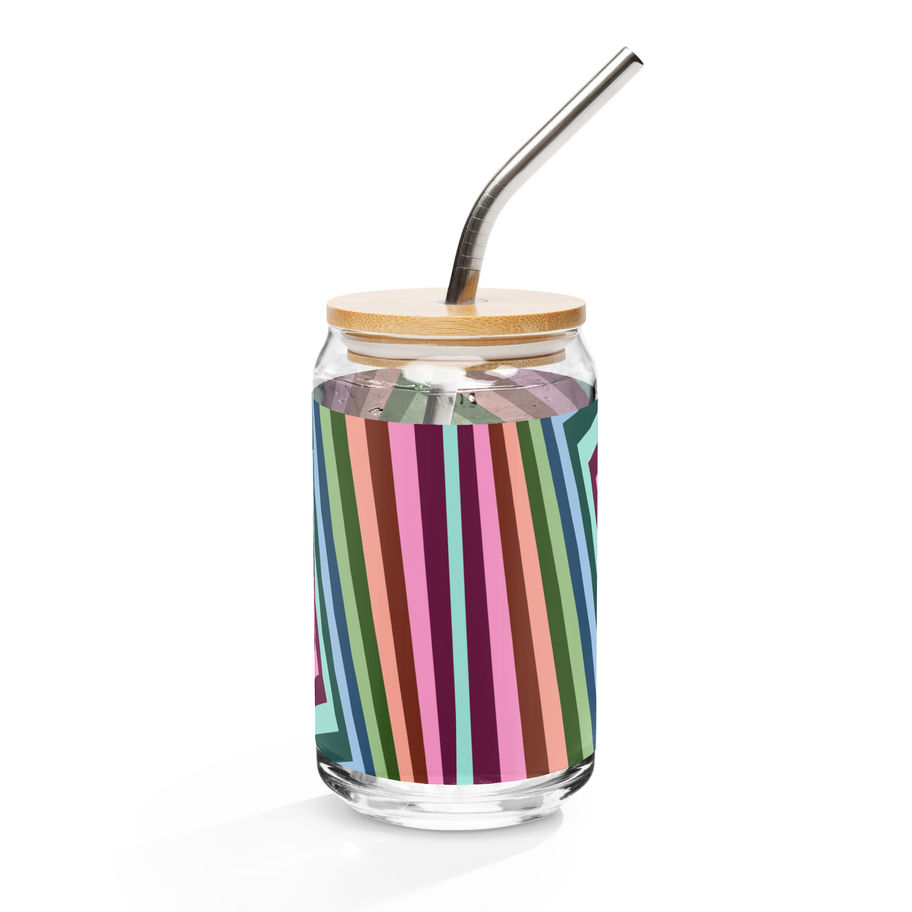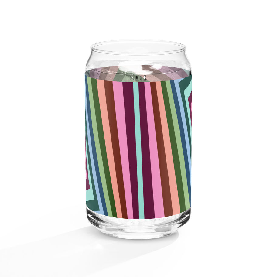 DS 16oz Can-Shaped Glass (with optional Lid & Straw) - 'Square Deal' (Multi)
