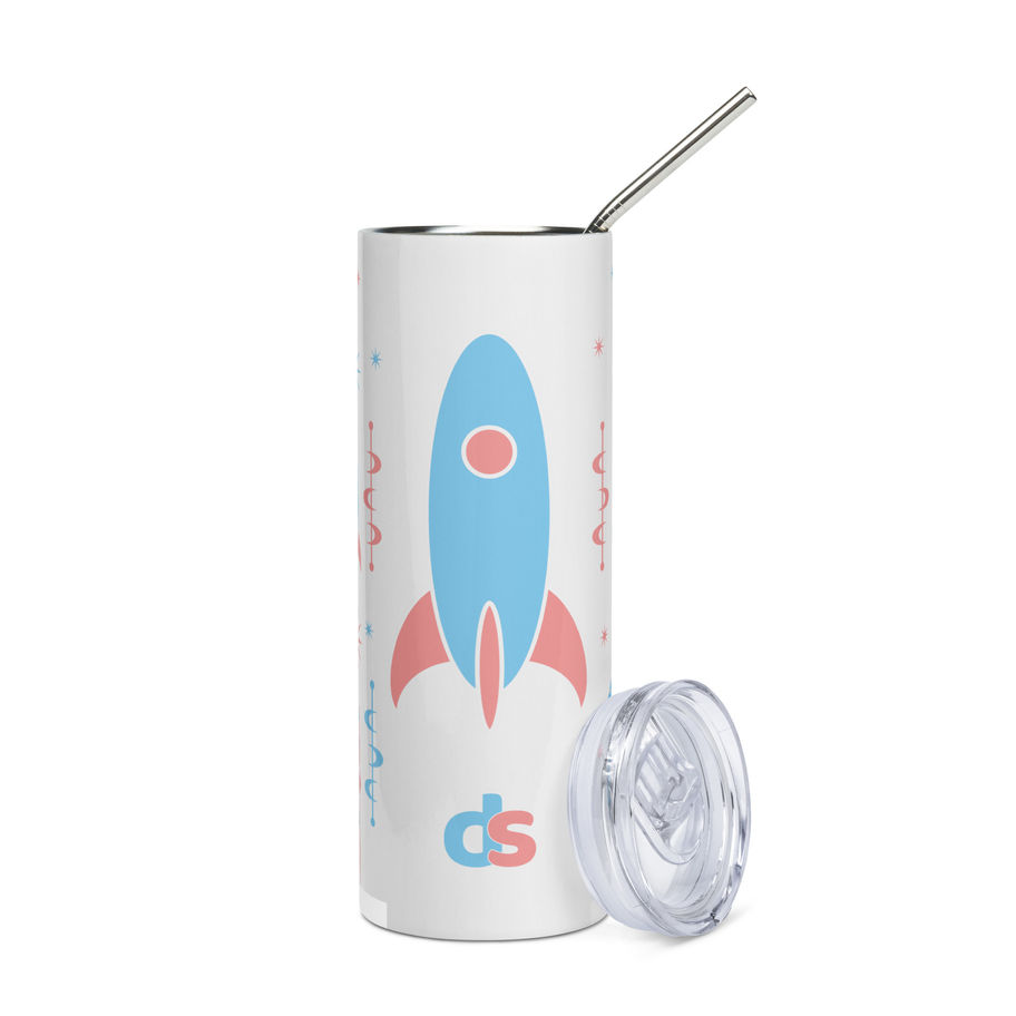 DS 20oz Slim Stainless Steel Tumbler with Straw - 'Retro' (Pink/Blue)