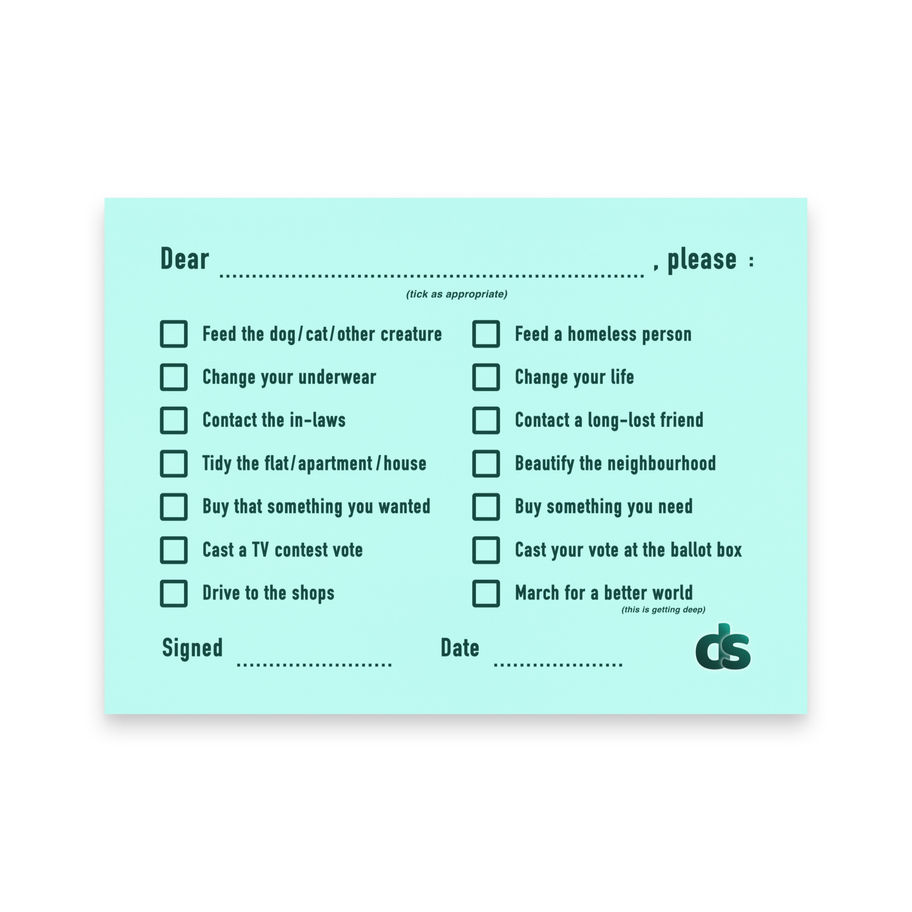 Help others organise their lives by leaving them this to-do note, with suggestions for tasks both tedious and fundamental. Each sheet features this clean, colourful printed design. It comes with 50 sticky pages and an adhesive strip that peels off cleanly.