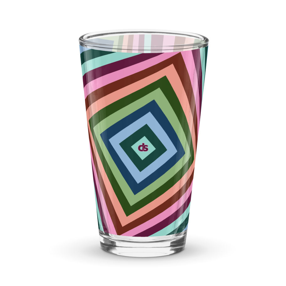 DS Pint-Style Shaker Glass - 'Square Deal' (Multicolour)