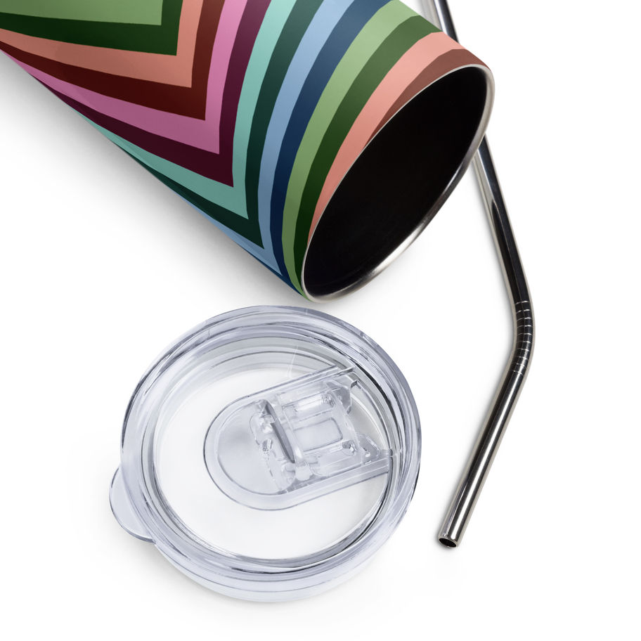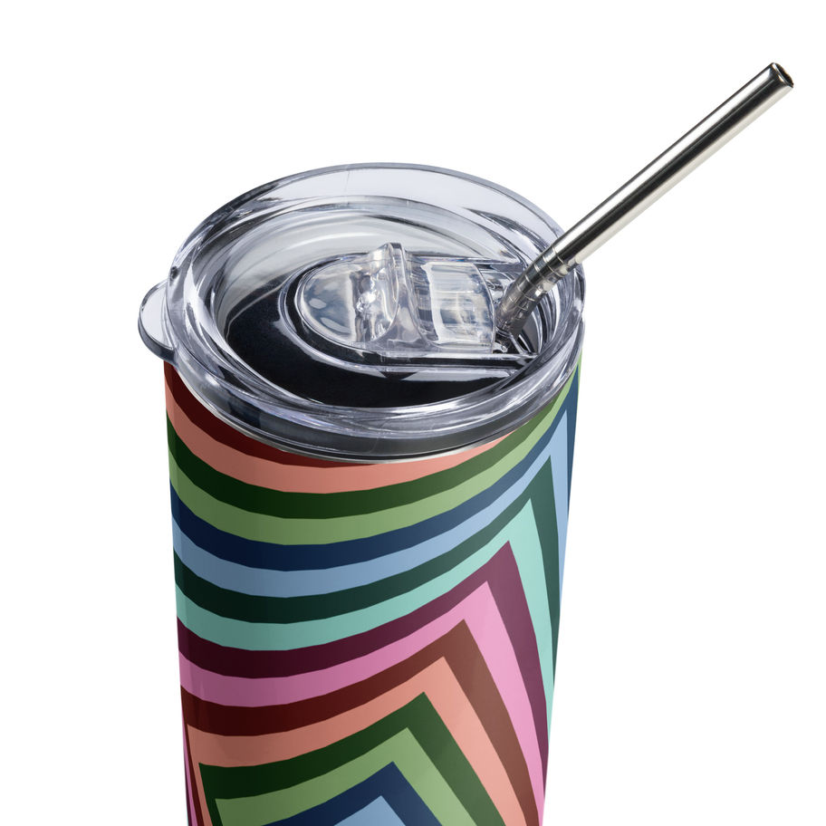 Enjoy hot or cold drinks on the go with this stylish stainless steel tumbler! This reusable tumbler with a metal straw is a perfect combo for hot or cold drinks at any time of the day.