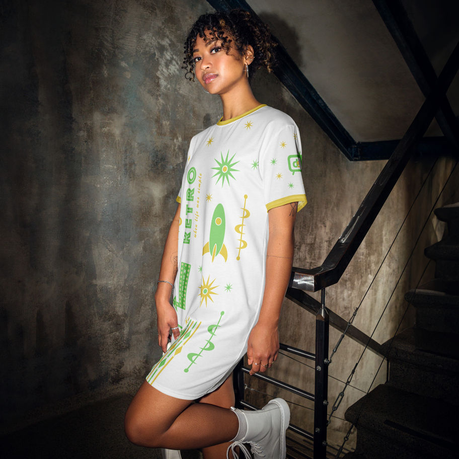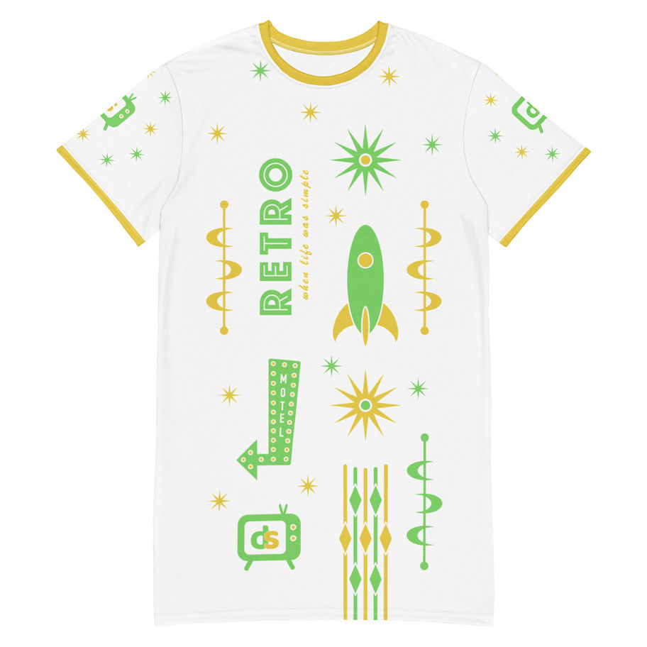 DS T-Shirt Dress - 'Retro' (Yellow/Green)